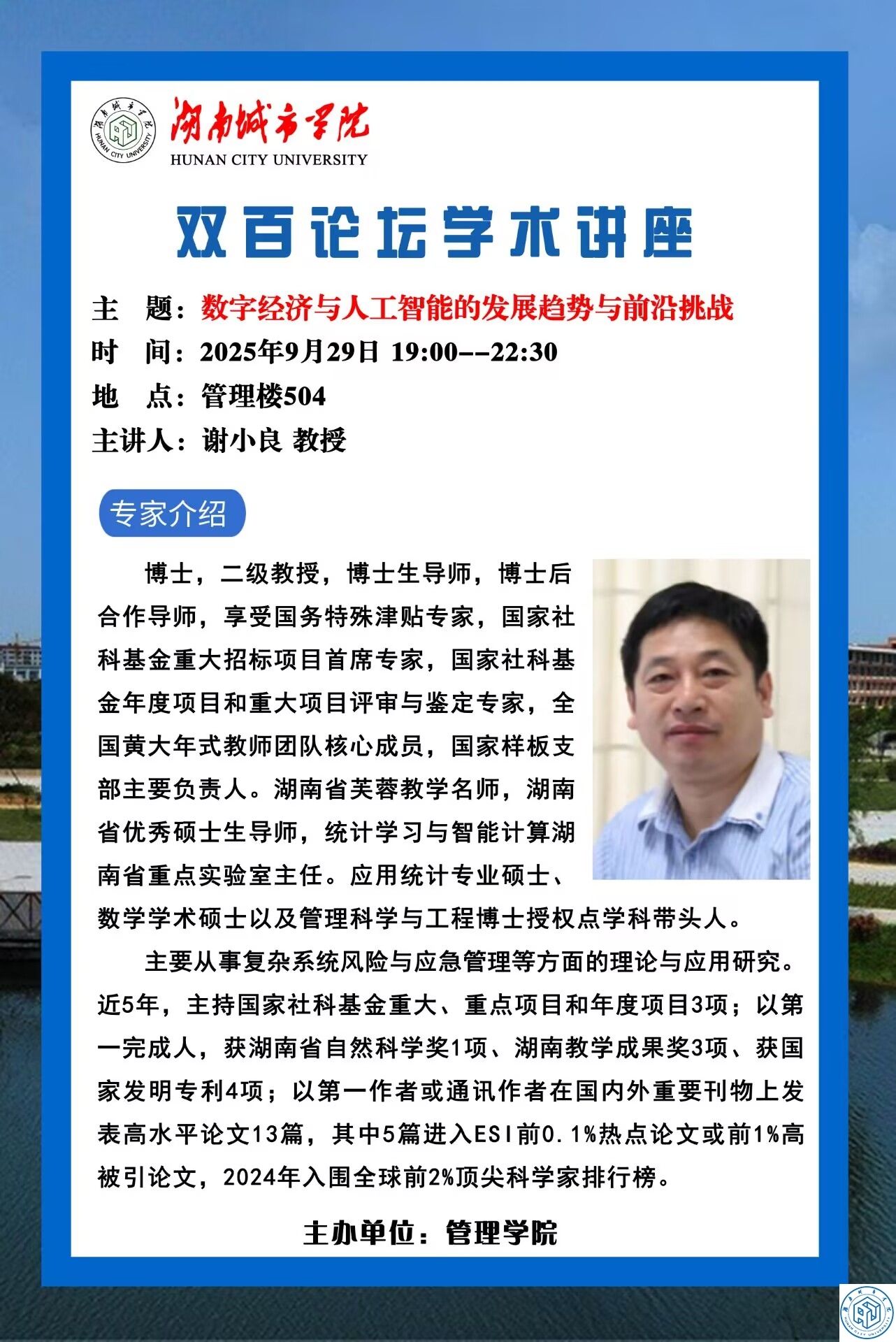 学术预告|双百论坛第125期:数字经济与人工智能的发展趋势与前沿挑战